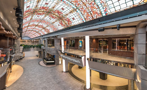 室內漫步長廊的天花板由一塊480平方米的巨大LED電子屏幕覆蓋: