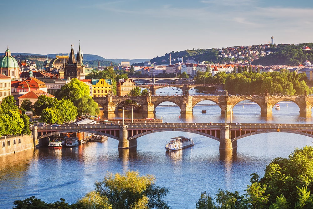 伏爾塔瓦河是捷克境內最大的河流,伏爾塔瓦河像一條綠色的玉帶,將布拉格分為兩部分。橫跨在河上的十幾座古老的和現代化的大橋,雄偉壯觀,其中最著名的是有四百年歷史的查理大橋。