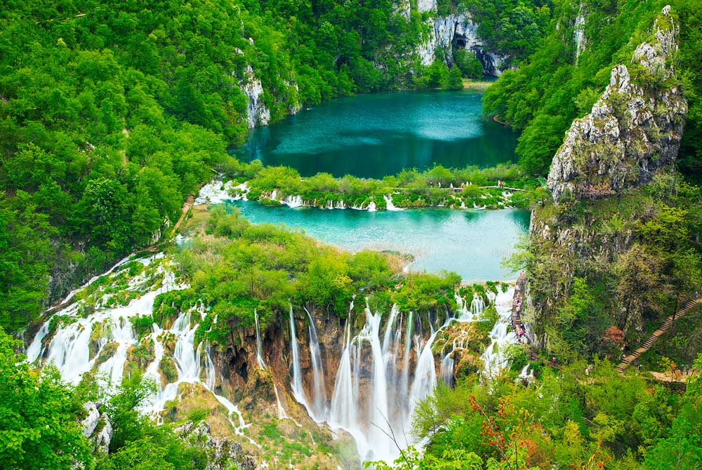 克羅埃西亞人最值得驕傲的自然景觀。豐富多變的地形地貌,春季瀑布、夏季蒼翠、秋季楓紅、冬季皚雪四季皆美。園內的石灰岩台階在落差中造就瀑布處處,16座湖泊分別散列各區,故有「16湖國家公園」的稱號。